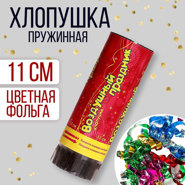 Хлопушка пружинная "Воздушный праздник" конфетти+фольга серпантин 11 см